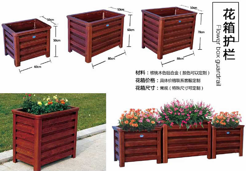 鋁合金花箱護(hù)欄: 可用于道路綠化、道路中央隔離、道路交叉口,機(jī)非隔離、非機(jī)動(dòng)車道和人行道隔離。還可以用在小區(qū)、公園綠化、廣場綠化、入口倆側(cè)綠化。 使用場景:公路道路、商業(yè)街、小區(qū)、公園、火車站、汽車站隔離作用。 家用植物:可用于家庭常用蔬菜種植。如:蔥、蒜、辣椒,生菜、雞毛菜等。 使用場所:陽臺(tái)、廚房、庭院等。 鋁合金花箱采用木紋鋁合金材料,比任何材料輕,更防腐,不發(fā)霉生銹,戶外使用更長久,而且在能源上可以重復(fù)利用的金屬材料。外觀上更具有很高的觀賞性,能顯示出格調(diào)與品位,并從設(shè)計(jì)、制造、安裝、檢驗(yàn)及售后服務(wù)上得到客戶的首肯與喜愛。 木紋鋁合金高低組合戶外花箱,采用純正木紋鋁合金,回歸自然,采用優(yōu)質(zhì)進(jìn)口鋁材,經(jīng)過熱轉(zhuǎn)印技術(shù),除蟲,防腐,定型等各種處理加工定型,再用進(jìn)口高分子漆噴涂,做到戶外持久耐用,不易變形,破裂,腐爛或蟲蛀,正常使用可達(dá)15-20年。戶外風(fēng)吹雨打環(huán)境使用更長久。 根據(jù)市民的切身需要,匯聚家具和花箱的理念,結(jié)合鋁合金材料的防腐、耐潮、抗老化,造型美觀,壽命長、且可回收利用,公司設(shè)計(jì)一款桌椅花箱,充分體現(xiàn)了環(huán)保理念,在外觀上擁有合理的結(jié)構(gòu),流暢的線條,堅(jiān)固耐用,高雅美觀,.可稱經(jīng)典之作。 |